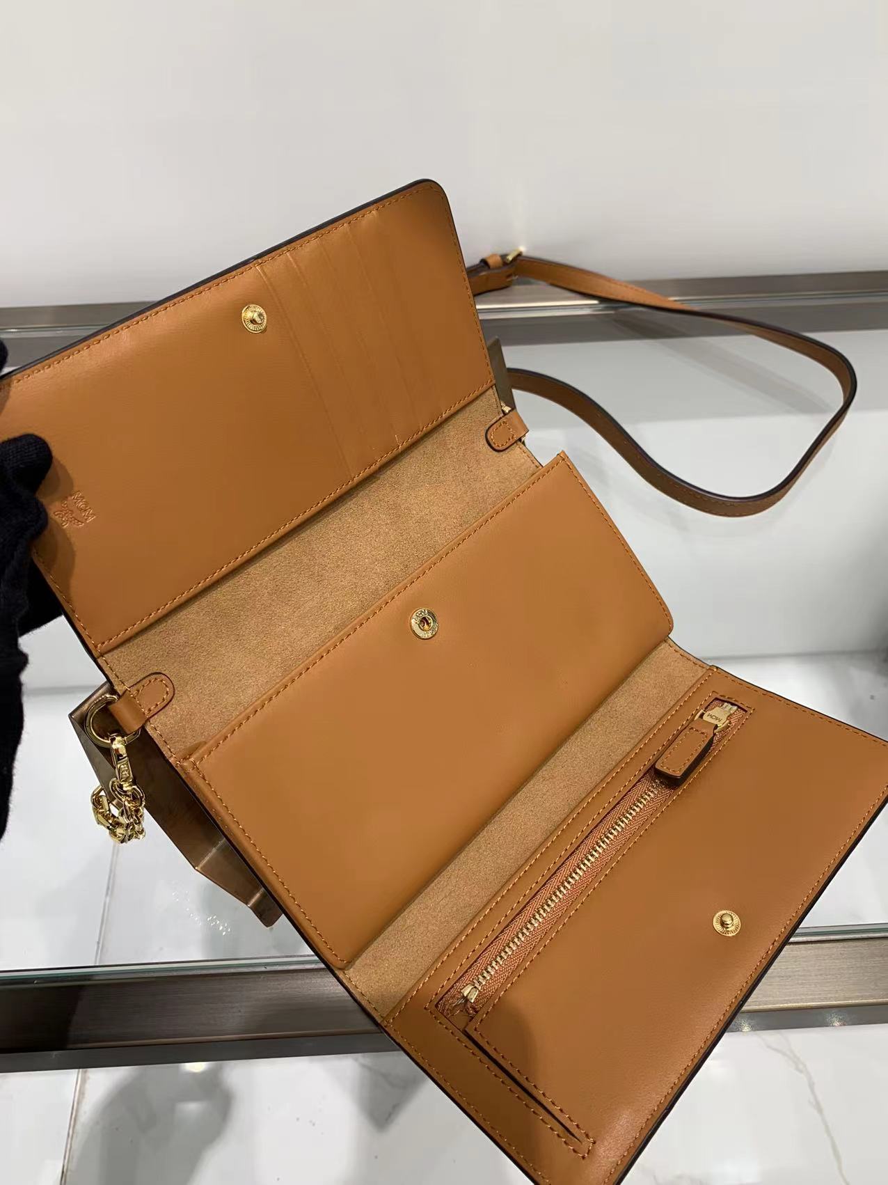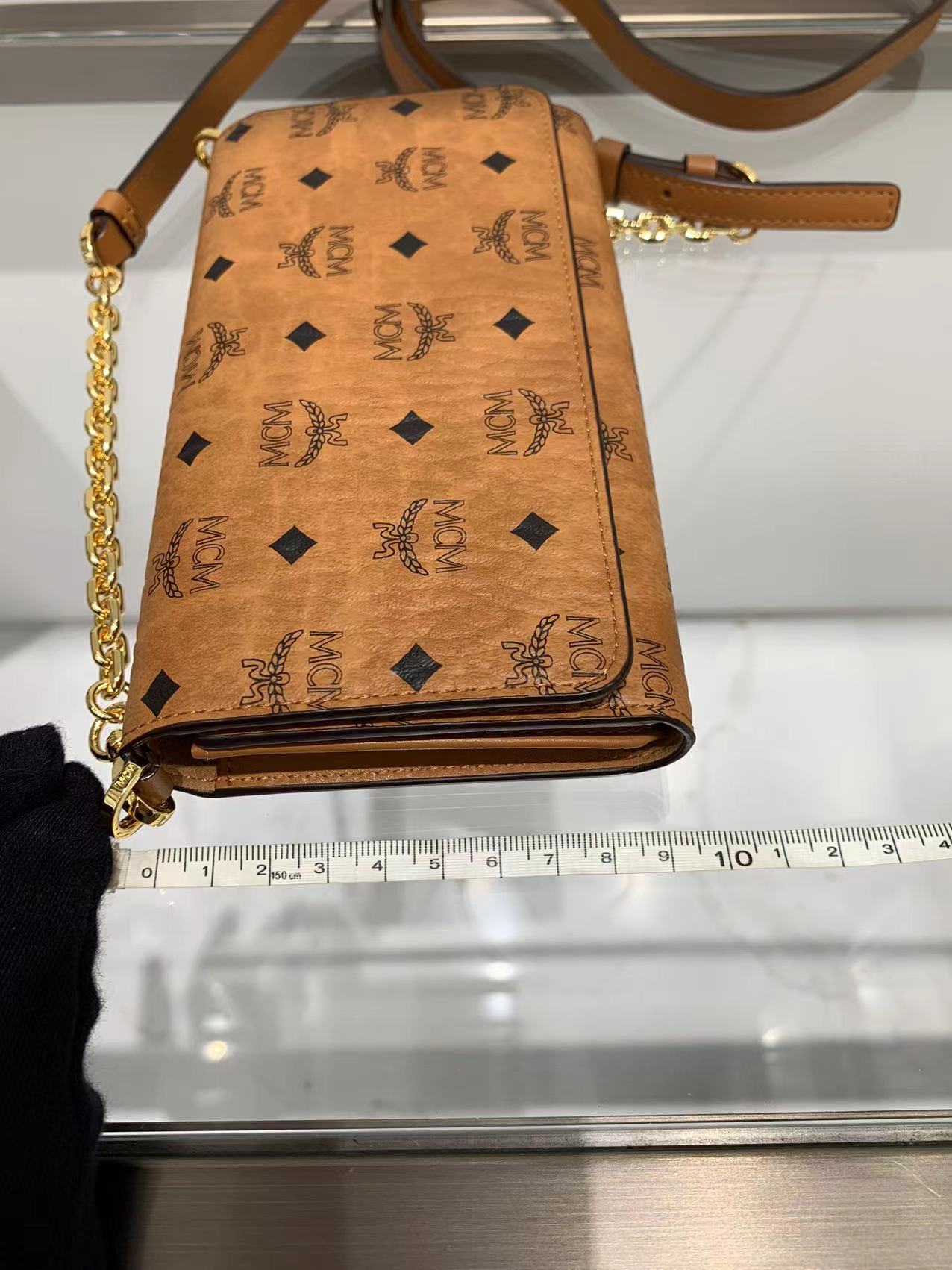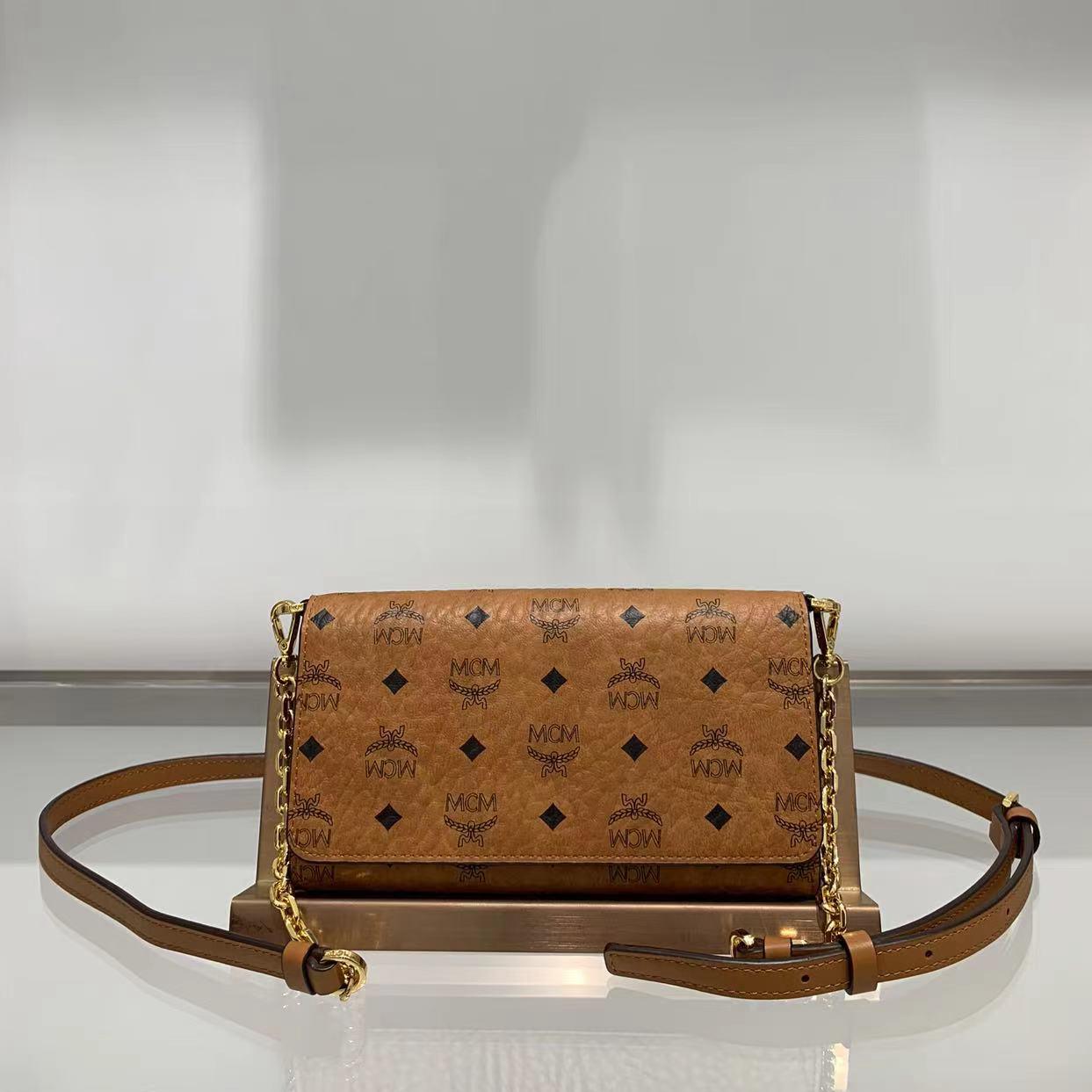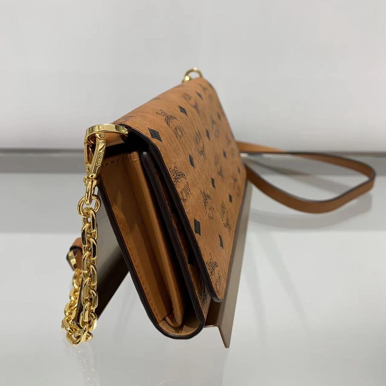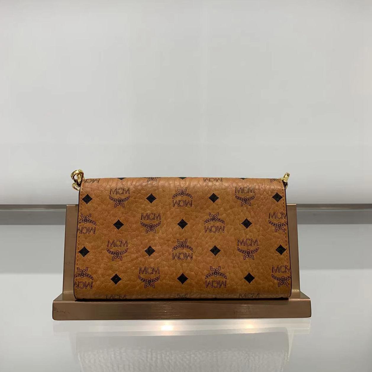 货品名称:MCM经典印花干邑色链条皮夹
